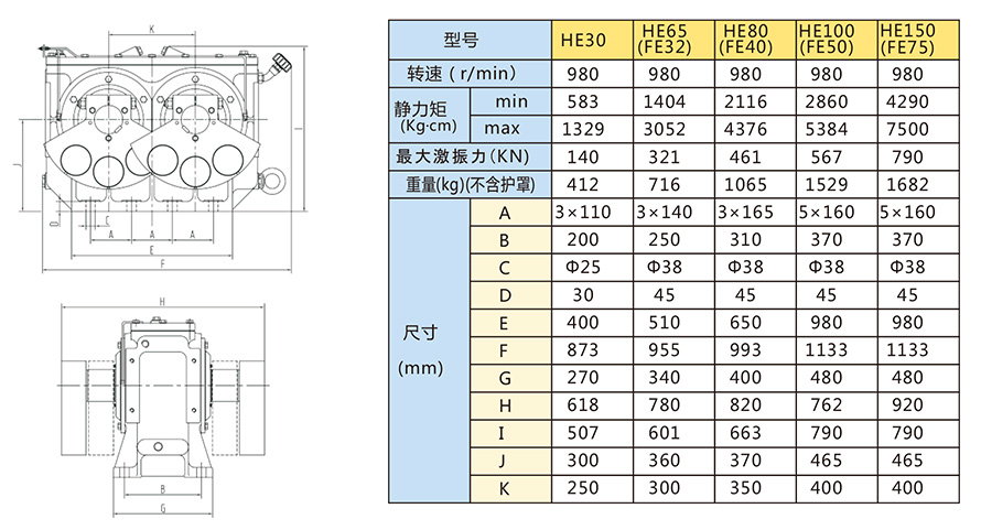 HE(FE)系列激振器技術參數(shù)